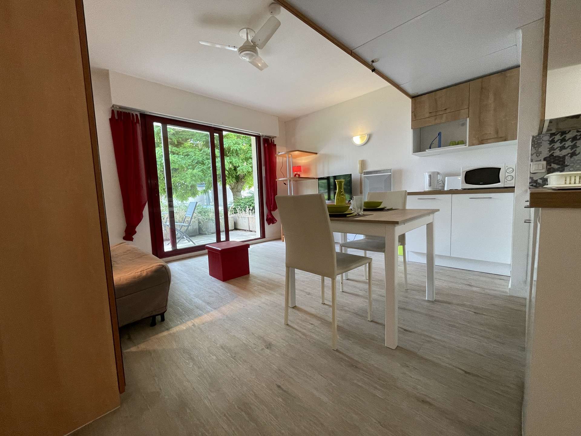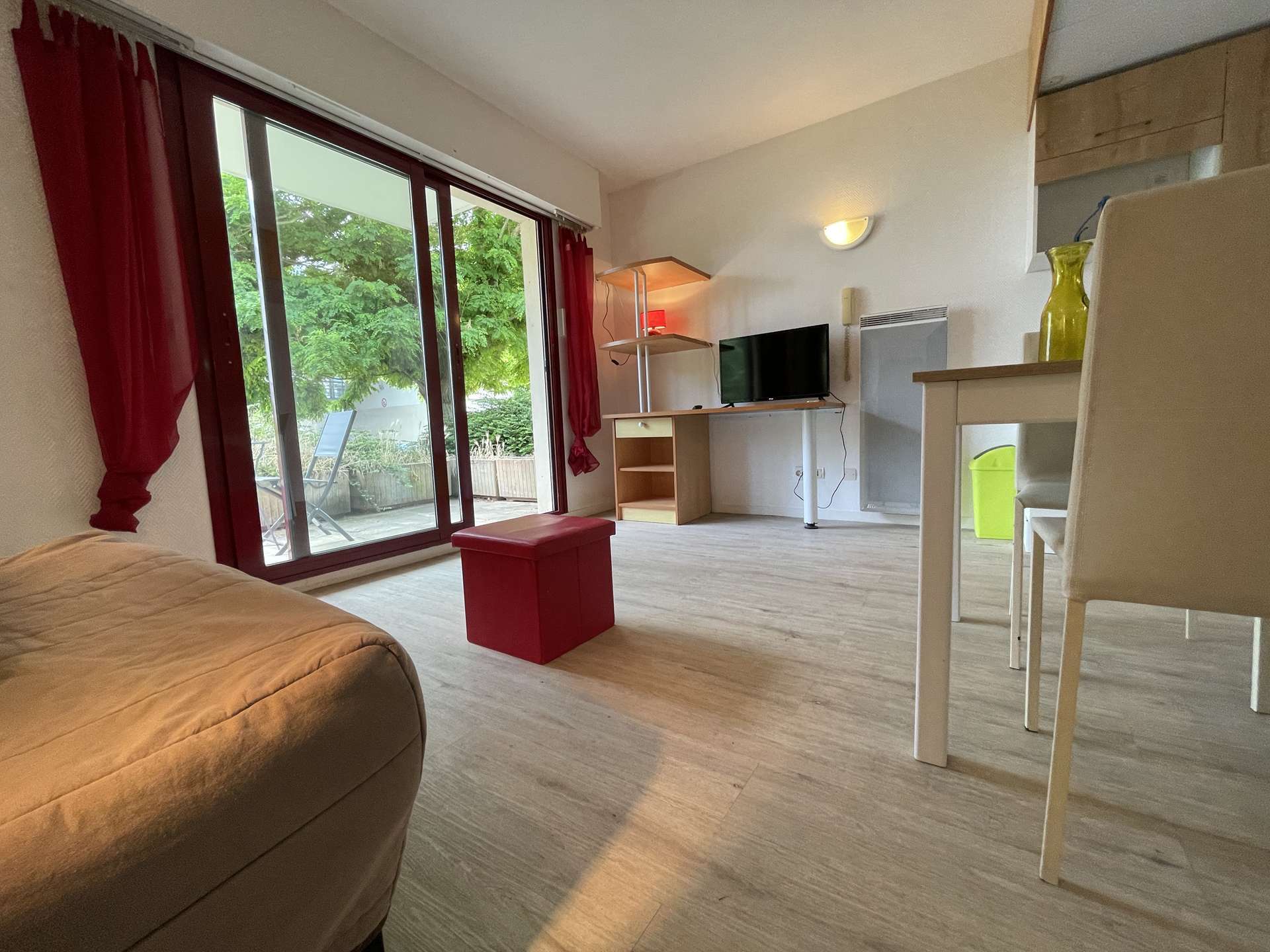 Cet appartement de vacances est situé au cœur des Minimes, proche du port de plaisance. Au rez de chaussé d'une résidence, l'appartement se compose d'un séjour avec convertible 2 places donnant sur une terrasse aménagée d'un salon de jardin, un coin cuisine équipée, une salle d'eau et un WC indépendant.